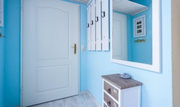 Die Wohnung für zwei Personen wurde äußerst liebe- und geschmackvoll maritim gestaltet, durch Farben und Deko wurden schöne Akzente gesetzt. Dabei wurde an alles gedacht (Sonnenschirme, Wäscheständer, ausreichend Platz und Ablagen im Bad, Musikanlage, Wecker,...), sogar ein Strandkorb auf der kleinen Terrasse:-)! Das Badfenster und die Terrassentüre waren mit Fliegenschutzgitter versehen. Die Wohnung war sehr sauber und gemütlich. Kurze Entfernungen zum Strand, gute zentrale Lage. Fußläufig ein Bäcker erreichbar mit gutem Frühstücksangebot und Außenbereich (Frühstück usw. ist durch die Küchenzeile natürlich auch in der Wohnung möglich!). Sehr guter Kontakt zu den Mitarbeitern von Meerfischland im Haus nebenan. Parkplatzprobleme wurden umgehend gelöst. Die Fenster sind nicht wirklich abzudunkeln, das hat uns allerdings nicht gestört. Alles in allem eine schöne ruhige Woche im schönen Ahrenshoop :-)!