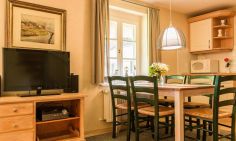dieses kleine Häuschen ist von außen ein Juwel, von innen ein Schuhkarton. Die Lage ist absolut top 2 Minuten zum Wasser 3 Minuten in den Ort. Aber Lage ist leider nicht alles. Ansonsten ist das Haus von innen sehr stark abgewohnt und bedarf einer gründlichen Renovierung !!!! Der Fußboden ist komplett verkratzt, es fehlen die Griffe am Sideboard im Wohnzimmer,die Tapete löst sich an einigen Stellen,am Besenschrank im Vorraum fällt der Griff ab beim Öffnen . Im Vorraum gibt es jede Menge Stockflecken an den Wänden. ein Sofa für 2 Personen und 2 Gartensessel ist auch nicht bequem für 4 Personen. Wir empfanden das Haus ist sehr dunkel und nicht wirklich gemütlich. Das Geschirr und die Gläser sind ein Sammelsurium und haben ihre beste Zeit schon Jahre überschritten!!! Der Geschirrspüler steht lieblos wie ein Störfaktor in einer Öffnung unter der Arbeitsplatte ,die Sitzfläche eines Stuhles ist kaputt Im Obergeschoss sind 2 Schlafzimmer ohne Schränke!!!! Diese befinden sich im Vorraum des Hauses und ganz ehrlich, Kleidung möchte man dort nicht aufbewahren. Durch die Wendeltreppe und den Zug zum Bad ist dieses Haus eigentlich nur für trittsichere Gäste ohne körperliche Einschränkungen geeignet. Im Bad welches über drei Stufen zu begehen ist, gab es nur lauwarmes Wasser!!! Das Waschbecken lief nicht richtig ab. Aber am gefährlichsten ist es wenn man duscht. Da es keinen Duschvorhang gibt wird die Treppe und der Bereich vor der Treppe komplett nass , so dass man aufpassen muss, dass der Schritt aus der Dusche bzw der Gang zur Toilette nicht der letzte ist!!! und ganz ehrlich ich möchte im Urlaub nicht jeden Tag das Bad mehrere Male mit den Handtüchern trocken wischen.