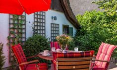 Der Außenbereich begeistert mit seinem liebevollen Garten und der großzügigen Terrasse. Hier kannst du dich in die Sonnenliegen legen und einfach nur entspannen, während du bei richtigem Wind das Meer rauschen hörst. Zum Ferienhaus gehören außerdem zwei PKW-Stellplätze.
