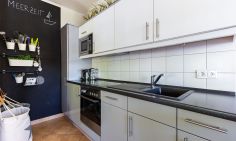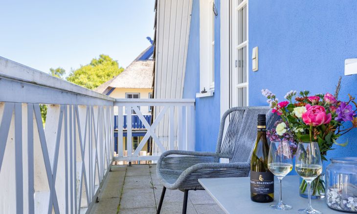 Der zur Wohnung gehörende Balkon mit Blick ins Grüne lädt zum Entspannen und Genießen ein. Ob für den ersten Kaffee des Tages an der frischen Ostseeluft oder mit einem Glas Wein am Abend. Zur Wohnung gehört zusätzlich ein PKW-Stellplatz.