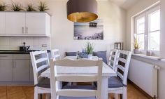 Die charmante Maisonette-Wohnung im ersten Obergeschoss des gepflegten Mehrfamilienhauses besticht durch ihre heimelige Atmosphäre und idyllische Lage zwischen Bodden und Ostsee. Mit der liebevollen Ausstattung bietet sie den idealen Rückzugsort für alle, die das Gemütliche suchen. Der helle Wohn- und Küchenbereich ist Mittelpunkt der Wohnung – egal, ob man entspannte Abende auf dem Sofa genießen oder am Esstisch den Tag mit einem sonnigen Frühstück beginnen lassen möchte. Das angrenzende Badezimmer sowie ein Schlafzimmer auf derselben Ebene sorgen zudem für kurze Wege.
