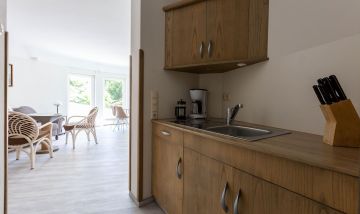 In den Häusern Muschel und Strandläufer gibt es noch 7 weitere Ferienwohnungen, die gern für Familien und Gruppen zusammen gebucht werden können. Des Weiteren befindet sich im Haupthaus ein Restaurant.
