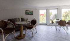 In den Häusern Muschel und Strandläufer gibt es noch 7 weitere Ferienwohnungen, die gern für Familien und Gruppen zusammen gebucht werden können. Des Weiteren befindet sich im Haupthaus ein Restaurant.