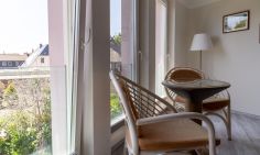 Die schöne Wohnung liegt im ersten Stock (Haus mit 4 Einheiten). Im Ort ist alles auch zu Fuß erreichbar: Restaurants, Strand, Supermarkt. Es gibt keinen Außenbereich zur Nutzung, aber wir haben bei unseren vielen Besuchen am Darß in den vergangenen Jahren gemerkt, dass wir diesen bei anderen Wohnungen wegen Mücken oder starkem Wind sowieso kaum nutzten.