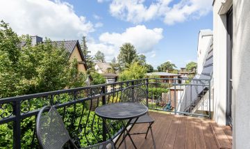 Das Obergeschoss bietet zwei liebevoll eingerichtete Schlafzimmer, die Ruhe und Erholung versprechen. Ein weiteres Highlight ist das gemütliche Lese- und Fernsehzimmer, das mit seinem Zugang zum Balkon einen idealen Rückzugsort für entspannte Stunden mit einem guten Buch oder einem Film bietet. Ein weiteres stilvolles Badezimmer mit Dusche rundet den Komfort in der oberen Etage ab.