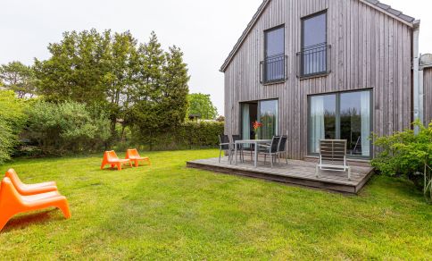 Das Ferienhaus hat uns bereits bei der Buchung von seiner modernen und schlichten Optik her zugesagt; tatsächlich erfüllt es in dieser Hinsicht auch alle Erwartungen. Die ökologische Holzbauweise erzeugt stets ein angenehmes Raumklima, auch bei kälteren Temperaturen. Das Mobiliar ist top und ohne unnötigen Schnickschnack, das Bad äußerst sauber und groß, die Betten sehr komfortabel. Für uns sehr wichtig: Die offene Küche ist mit allem ausgestattet, was man braucht. Allein der Kühlschrank könnte für die Personenzahl etwas größer ausfallen. Was fehlte: In der Beschreibung war sowohl von einer HiFi-Anlage als auch von Brettspielen die Rede: Beides war nicht vorhanden; lediglich eine Handvoll Bücher. Das sollte man wissen, wenn man mit dieser Ausstattung rechnet. Das Haus liegt sehr ruhig und dennoch zentral in Born. Man hört keinerlei Geräusch von der Straße her, da das Gebäude in zweiter Reihe liegt. Am Hahn im Nachbarhaus sollte man sich nicht stören. Vom ersten Stock hat man einen wunderbaren Blick; das große Wiesenstück mit Terrasse im Erdgeschoss ist aber gut durch eine Hecke abgeschirmt.