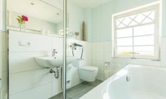 In einzigartiger und beliebter Lage befindet sich diese Haushälfte. Nur knappe 100 Meter trennen dich vom feinen Ostseestrand in Ahrenshoop. Genieße vom Ober- und Dachgeschoss einen traumhaften Blick auf die Ostsee, bei dem sich das Urlaubsgefühl sofort einstellt. Einkaufsmöglichkeiten, Galerien und Restaurants sind schnell und gut erreichbar. Vielleicht ist es für dich interessant, dass der berühmte Grenzweg die historische und geografische Grenze zwischen Fischland und Darß sowie zwischen Mecklenburg und Pommern darstellt.