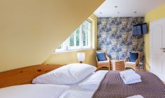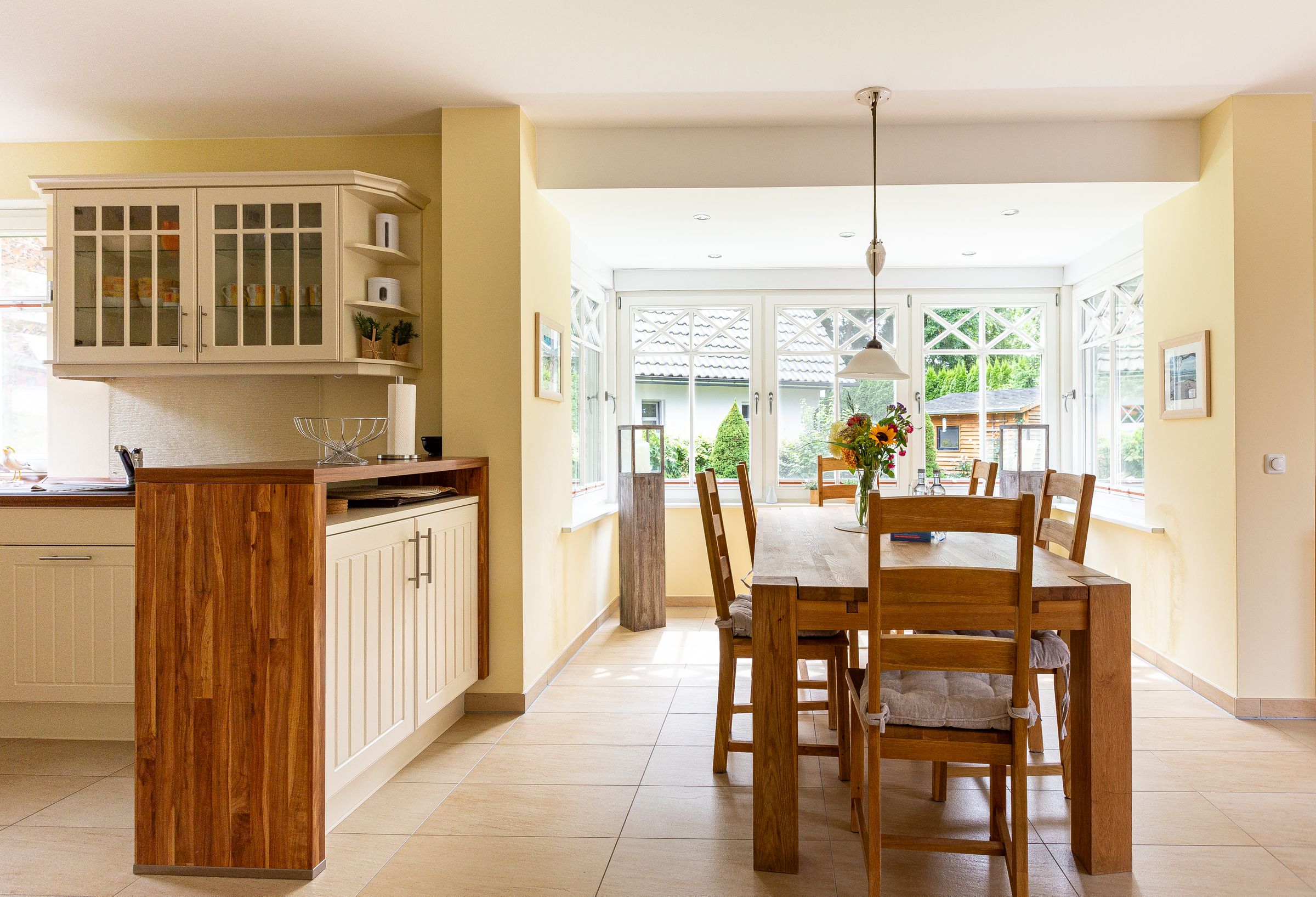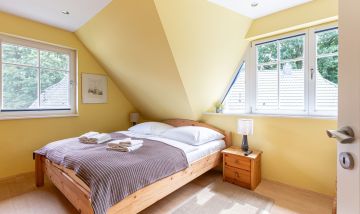 Wir (zwei Erwachsene und ein Sechsjähriger) haben zwei Wochen in diesem wunderschönen Haus verbracht. In unsrem inzwischen siebten Prerowurlaub, jeweils in verschiedenen Unterkünften, hat uns besonders der tolle Garten gefallen, der zusammen mit z.B. der allumfassenden Küchenausstattung (inkl. Raclettegrill, Fondueset, diversen Backformen und sogar einem Milchschäumer) und der liebevollen Deko im Haus für uns den Unterschied zu reinen Feriendomizilen machte. Hier sieht und spürt man, dass auch die Eigentümer Zeit in ihrer Prerowliebe verbringen. Die wenigen Kritikpunkte laufen unter "Jammern auf hohem Niveau", dennoch erwähnen wir sie hier zur besseren Orientierung für künftige Gäste der Prerowliebe: - Die Schlafzimmer können nur mit innenliegenden Plissees abgedunkelt werden, wer also einen lichtempfindlichen Schlaf hat, wird mit dem Sonnenaufgang geweckt. Bei offenem Fenster ist gar keine Abdunkelung möglich. - Die Betten empfanden wir als sehr hart. Das ist für viele genau richtig, für meinen Mann und vor allem mich leider nicht. - Unser Sohn war hellauf begeistert von der riesigen Eckbadewanne und hat sie mehrfach genutzt. Allerdings reicht das warme Wasser nicht für eine Wannenfüllung. Also Wanne zu ca. 2/3 füllen, Kind schonmal rein, Viertelstunde warten und dann weiteres warmes Wasser nachlaufen lassen :) Auch wenn wir alle nacheinander geduscht hatten und dann z.B. noch in der Küche Geschirr gespült wurde, war der Warmwasservorrat erstmal aufgebraucht. - Insektenschutz ist nur an einigen Fenstern vorhanden, mindestens an einem pro Zimmer, sodass man überall lüften kann, ohne von Stechmücke & Co. behelligt zu werden. Soweit völlig in Ordnung, allerdings haben wir sehr eine Insektenschutztür zur Terrasse vermisst. Dadurch muss die Terrassentür immer möglichst schnell wieder geschlossen werden, was wir sehr schade fanden. Normalerweise nutzen wir an warmen Tagen den Gartenbereich wie ein zweites Wohnzimmer und lassen die Tür dafür offen. - Der Fahrradabstellraum ist gleichzeitig der Platz für die Mülltonnen und insgesamt recht klein. Unsere drei Räder passten nicht hinein, sodass wir sie einfach hinter dem Raum auf den nicht einsehbaren Weg zum Garten geparkt haben. Alternativ kann man Fahrräder auch wettergeschützt in den Carport stellen, wobei sie dort dann offen sichtbar stehen. - Kleinigkeit, aber vielleicht interessant für alle Gäste mit langen Haaren ;-): ein Föhn ist vorhanden, aber extrem schwach auf der Brust. Vielleicht besser einen eigenen mitnehmen. Trotz dieser kleineren Abstriche haben wir uns im kürzester Zeit in der Prerowliebe wie zuhause gefühlt.