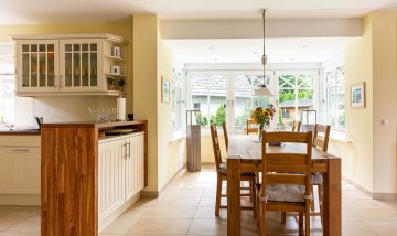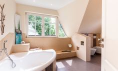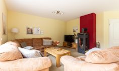 Das familienfreundliche Ferienhaus begeistert mit einem großzügigen Wohn- und Küchenbereich, der zum Entspannen und Zusammensein einlädt. Die offen gestaltete Landhausküche ist bestens ausgestattet und ideal für’s gemeinsame Kochen. Abgerundet wird das Erdgeschoss mit einem Gäste-Bad. Im Obergeschoss befinden sich zwei gemütliche Schlafzimmer, die jeweils mit Verdunklungsvorhängen, Kleiderschrank und TV ausgestattet sind. Besonders vorzuheben ist das große Spa-Bad mit Badewanne und Erlebnisdusche – perfekt für wohltuende Wellnessmomente.