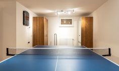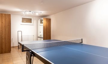 Im Keller stehen eine Sauna, eine Tischtennisplatte, eine Dartscheibe und ein Fitnessbereich mit Trampolin und Hometrainer als Schlechtwetter-Alternativen zur Verfügung. Für weiteren Komfort befindet sich auch im Untergeschoss eine Dusche und ein WC.