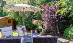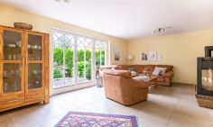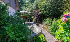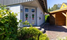 Viel Platz zum Entfalten bietet auch der herrliche Außenbereich mit seiner großen Steinterrasse und dem schön angelegten Garten samt Grillmöglichkeit. Zum Ferienhaus gehören ein Carport und eine zusätzliche Parkmöglichkeit.