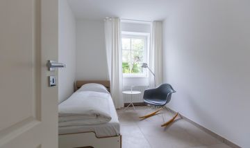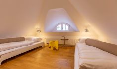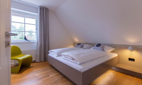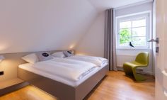 Die Wohnung ist sehr schön, modern eingerichtet und es ist alles da, was man braucht. Leider konnten wir in der Beschreibung aber nicht erkennen, wie die Zimmerausstattung ist. Es handelt sich um zwei vollwertige Schlafzimmer mit Doppelbetten und großen Schränken, 1 Zimmer im EG mit 2 Einzelbetten und 1 Zimmer im Dachboden mit 2 Einzelbetten. Die Einzelbetten sind bodennah (ca. 15 am hoch) und haben eine einfache, harte Matratze. In den Zimmern mit den Einzelbetten gibt es keine Schränke. Der Zugang zum Dachboden ist eher was für Kinder, da der Durchgang durch eine Kammer stark reduziert ist. Durch die kleinen Fenster im Dachboden wirkt hier alles sehr beengt. Für einen Urlaub mit 4 Erwachsenen und 4 Kindern also gut geeignet, für uns (7 Erwachsene) nicht optimal, daher bei Ausstattung, Komfort und Preis-Leistung ein Stern Abzug. Die Lage ist ruhig und schön. Leider hatten wir kurzfristig nur im Haus in der zweiten Reihe eine Wohnung bekommen, daher für den fehlenden Weitblick in die Landschaft auch ein Stern weniger. Das Restaurant "Am Kiel" ist sehr zu empfehlen und fußläufig erreichbar.