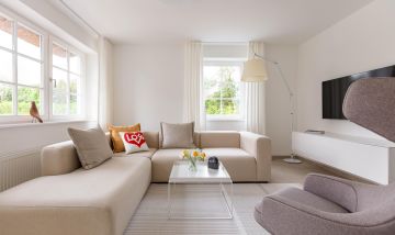 Die Wohnung Pur A5 in Ahrenshoop hat unsere hohen Erwartungen erfüllt. Die Einrichtung / Ausstattung der Wohnung war modern, sauber und entsprach genau den Abbildungen auf der Webseite. Ein Ort, wo man sich rundum wohl fühlen kann - zumal ein kleiner Garten / Terrasse auch noch zum Verweilen einlädt. Die Wohnung ist etwas ausserhalb des Ortes Ahrenshoop, in der Ruhe gelegen und mit dem Fahrrad erreicht man Ahrenshoop in kürzester Zeit. Wir können diese Wohnung bestens weiterempfehlen - wir kommen wieder. Andrea P. / Schweiz