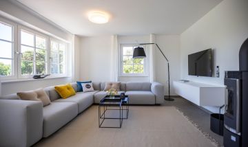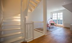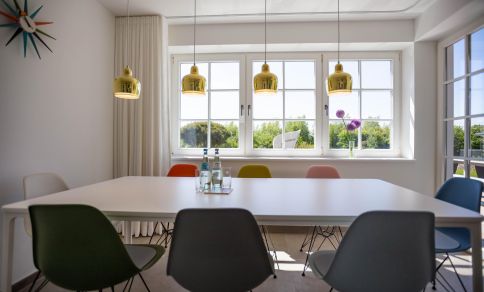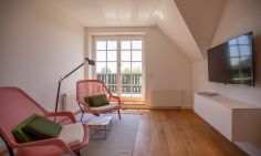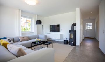 Die traumhafte Doppelhaushälfte unter Reet wurde in 2021 aufwendig saniert. Während die Außenansicht für das Fischland charakteristisch maritim gehalten ist - folgt PUR A7 im Innenbereich dem modernen PUR-Stilkonzept mit klarem, puristischem und zeitlosem Design. Der offen gestaltete Wohnraum kombiniert Küche, Esstisch und Big-Sofa zu einem modernen Treffpunkt für Familie und Freunde. Ausgesuchte Möbelstücke und farbliche Akzente schaffen auch in diesem PUR-Ferienhaus wieder einen gelungenen Mix aus Stil und Wohlgefühl. Hygge wird es trotz zurückhaltender Einrichtung auch in den vier Schlafzimmern des Hauses. Die komfortablen Betten bieten einen optimalen Schlaf. Gemeinsam mit der hochwertigen Einrichtung und teilweise wunderschönem Boddenblick wurden hier im wahrsten Sinne traumhafte Räume der Ruhe geschaffen. Abgerundet wird der Wohnkomfort durch zwei edle Badezimmer mit Rainshower-Dusche und Designer-Badelementen. Es ist eben das PUR-Gefühl, dass du in jeden Raum dieses besonderen Ferienhauses spürst und dass dir einen ästhetischen und anspruchsvollen Urlaub garantiert.
