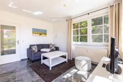 Diese Wohnung verfügt über einen Wohnraum mit einer gemütlichen Sitzecke. Die Küchenzeile und der Essplatz sind unmittelbar integriert und schaffen einen offenen Wohncharakter. Das Schlafzimmer ist mit einem Doppelbett ausgestattet. Weiterhin schließt sich das Bad mit Dusche/WC an sowie eine kleine Abstellkammer. Auf der Süd-Terrasse mit einem wunderbaren Blick ins Grüne kannst du nach einem ereignisreichen Tag deinen wohlverdienten Feierabend verbringen.