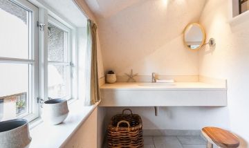 Über den kleinen Eingangsbereich mit Garderobe gelangst du direkt in den lichtdurchfluteten Wohnraum mit einer gemütlichen Sitzecke am modernen Kaminofen. Der einladende Essbereich und die hochwertige Einbauküche sind unmittelbar im Wohnbereich integriert. Ein Gäste-WC findest du ebenfalls im Erdgeschoss. Das Obergeschoss beherbergt ein Schlafzimmer mit einem Doppelbett sowie ein zweites Schlafzimmer mit einem Einzelbett. Das edle Badezimmer verfügt über Dusche/WC.