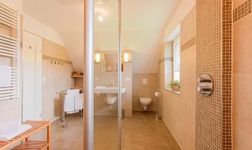 Dieses Haus sorgt dafür, dass man sich sofort zu Hause fühlt. Es fehlte an nichts, die Ausstattung war perfekt und die Erholung konnte sofort beginnen. Wer Ruhe mag und keinen Trubel braucht, ist hier in Wieck und in diesem Haus genau richtig. Einen kleinen Hinweis haben wir allerdings: Der Duschkopf ist eine Katastrophe, er ist nicht wirklich einstellbar, was den Wasserstrahl betrifft und passt nur mit viel Mühe in die Halterung an der Duschstange. Bei so einem schönen Haus nicht dramatisch, aber könnte verbessert werden. Es hat unseren Wohlfühlmodus aber nicht gestört.