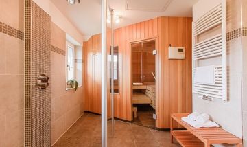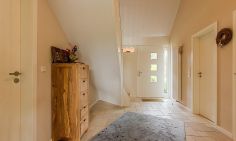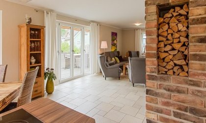 Im Erdgeschoss erwartet dich der einladende und ansprechende Wohnraum mit einer gemütlicher Sitzecke am Kaminofen. Die hochwertige Einbauküche sowie der lichtdurchflutete Essbereich sind unmittelbar integriert und schaffen einen offenen Wohncharakter. Das Bad ist mit Dusche/WC sowie einer Waschmaschine ausgestattet. Das Schlafzimmer verfügt über ein Doppelbett. Weiterhin findet ein Abstellraum in der unteren Etage Platz. Das Obergeschoss beherbergt zwei weitere Schlafzimmer, die ebenfalls mit Doppelbetten ausgestattet sind. Außerdem wurde hier eine Wohlfühloase geschaffen - eine Wohngalerie mit gemütlicher Sitzecke und TV sowie für "Leseratten" eine kleine Bibliothek. Das edle Badezimmer bietet dir neben Dusche/WC eine kleine Wellnessoase (Sauna) zum Entspannen.