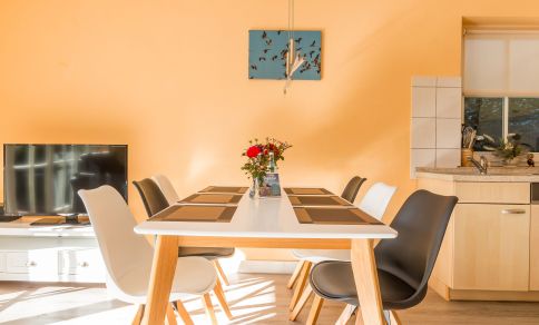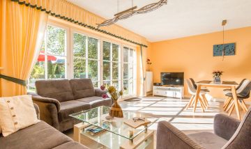 Die Doppelhaushälfte mit 98 Quadratmetern Wohnfläche bietet dir und deinen Liebsten viel Platz für erholsame Urlaubstage an der wunderschönen Ostsee. Mit drei gemütlichen Schlafzimmern und zwei Bädern ist das Ferienhaus ideal für Familien, Freundesgruppen oder alle, die Wert auf eine entspannte Auszeit legen. Der offene Wohn- und Küchenbereich lädt zum gemeinsamen Kochen und Verweilen ein – hier kannst du die Seele baumeln lassen und es dir einfach auf dem Sofa gemütlich machen. Auch dein Hund ist herzlich willkommen. Die Terrasse erweitert den Wohnraum nach draußen und bietet einen idyllischen Rückzugsort, um die Sonnenstrahlen zu genießen oder den Tag bei einem Glas Wein ausklingen zu lassen.
