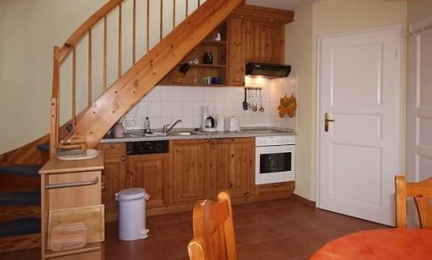 Im Obergeschoss der Maisonette-Wohnung empfängt dich der Wohnraum mit einer gemütlichen Sitzecke. Die Küchenzeile und der Esstisch sind unmittelbar integriert und schaffen einen offenen Wohncharakter. Das Schlafzimmer verfügt über ein Doppelbett. Weiterhin findet ein Bad mit Dusche/WC auf dieser Etage Platz. Das Dachgeschoss beherbergt eine offene Schlafgalerie mit einem Tandembett (ein Einzelbett mit ausfahrbarem Rollbett). Aus den Schlafzimmern und vom Bad genießt du einen traumhaften Seeblick. Im Haus befindet sich eine Gemeinschafts-Sauna*, die du gern gegen eine kleine Gebühr nutzen kannst.