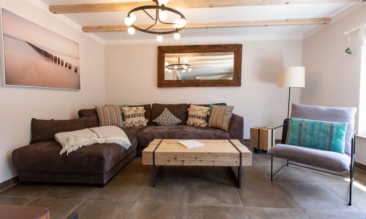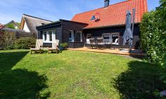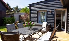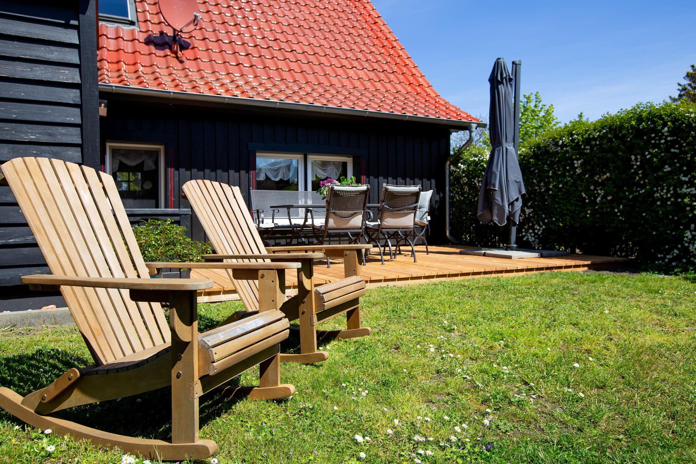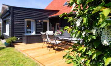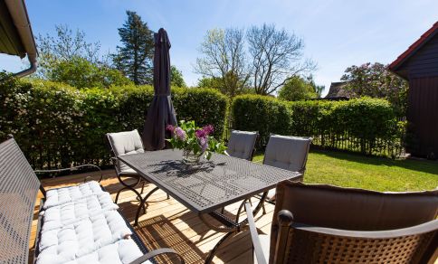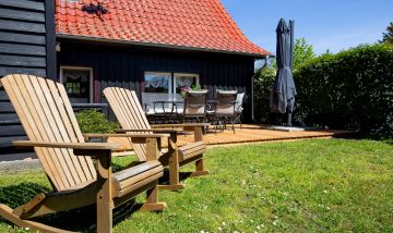 Eine sonnige Terrasse mit hochwertigen Möbeln befindet sich auf dem großzügigen Naturgrundstück und gehört ebenfalls zum Ferienhaus. Hier kannst du ganz entspannt in den Tag starten oder diesen mit einem leckeren Sommer-Barbecue ausklingen lassen. Außerdem stehen dir zwei PKW-Stellplätze zur Verfügung.