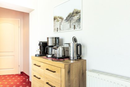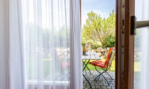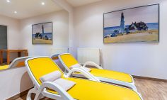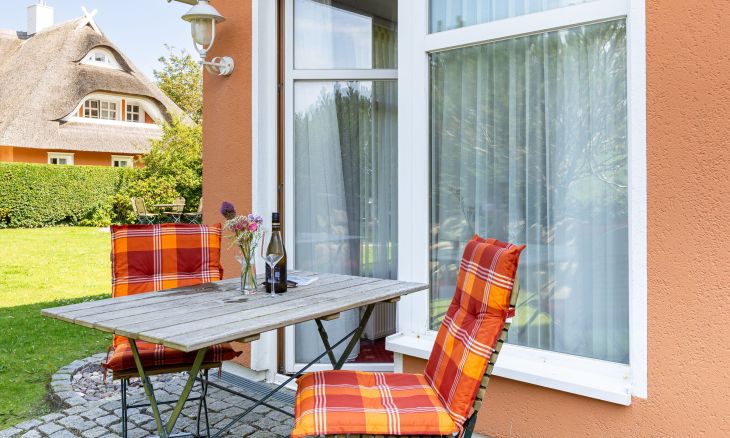 Eine kleine Sonnenterrasse mit West-Ausrichtung gehört ebenfalls zur Ausstattung und begeistert mit einem tollen Blick auf die Dünen. Hier kannst du bei Meeresrauschen und traumhaften Sonnenuntergängen deinen Urlaub genießen. Ein PKW-Stellplatz gehört zur Ferienwohnung dazu.