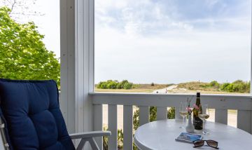 Ein schöner Balkon mit West-Ausrichtung sowie ein Balkon mit Nord-Ausrichtung gehört ebenfalls zur Ausstattung und begeistert mit einem tollen Blick auf die Dünen. Hier kannst du bei Meeresrauschen und traumhaften Sonnenuntergängen deinen Urlaub genießen. Ein PKW-Stellplatz gehört zur Ferienwohnung dazu.