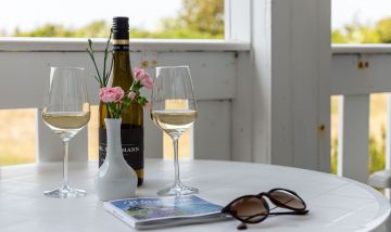 Das fischlandtypische Ferienhaus mit zehn Einheiten befindet sich in Traumlage, direkt hinter der Düne und nur 50 Meter vom weißen Ostseestrand entfernt. Dank der kleinen Seitenstraße kannst du hier Ruhe und Erholung abseits der turbulenten Hauptstraße genießen. Der Ortskern mit seinen Einkaufsmöglichkeiten, Restaurants und Cafés sowie unzähligen Kunstgalerien befindet sich ebenfalls nur einen Katzensprung entfernt und kann bequem zu Fuß erkundet werden. Ein besonderes Highlight ist der Fischverkauf am Strom. Hier gibt es fangfrischen Fisch direkt vom Boot des Fischers am Strand - vorausgesetzt der Wind weht unter drei Knoten.
