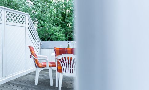 Ein schöner Balkon mit Ost-Ausrichtung gehört ebenfalls zur Ausstattung und begeistert mit einem tollen Blick ins Grüne. Hier kannst du bei Meeresrauschen und traumhaften Sonnenuntergängen deinen Urlaub genießen. Ein PKW-Stellplatz gehört zur Ferienwohnung dazu.