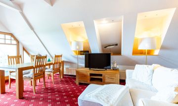 Die Lage ist super, die Sicht von der Terrasse (Claasen 8) aufs Meer ist einfach genial! Die Ausstattung der (kleinen ) Küche und der Räume ist in Ordnung, auch die Möblierung ist angemessen und gemütlich. Verbesserungs-Potential bzw. Nachteile: - Außenanstrich Terrasse + Dachunterseite erneuern, es "bröselt" ziemlich! - Die Treppe nach oben ist eng und steil - klar, das geht baulich nicht anders, aber ein Hinweis in der Beschreibung wäre unbedingt geboten! - Direkt vor der Eingangstür im Garten lagen 4 Tage lang mehrere halbvolle Müllsäcke. Hausmeisterdienst? - Die vielen Schrägen innen sind zwar nett und irgendwie heimelig, aber über Toilette, Badewanne und einem der Betten störend (vor allem wenn man > 1,90 m ist!). Generell wäre eine kl. Dusche zum Stehen besser als diese Riesen-Wanne. - Die Wohnung ist klar besser als die kleineren Apartments im Haus, aber ob das wirklich deutlich mehr als den doppelten Preis rechtfertigt? (bis 1,6-fach zu den darunterliegenden Wohnungen wäre m. E. okay).