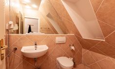 Zugegeben, der Blick ist fantastisch, die Einrichtung ist durchaus geschmackvoll, aber ob das den sehr hohen Preis wert ist?? Die Sitz-Dusch-Badewanne im Schlafzimmer ist ein Unding! Und wer vielleicht Probleme mit der Hüfte hat, kommt eh nicht rein in dieses Teil. Ich frage mich auch, wie das ablaufen soll, wenn tatsächlich noch eine dritte Person mitwohnt…? Die Küche ist wirklich extrem mini - aber gut, manch eine/r will im Urlaub auch gar nicht kochen. Und das Treppenhaus… Hier ist absolut Vorsicht geboten, damit man sich nicht die Knochen bricht, da die Stufen unterschiedlich breit und unterschiedlich hoch sind.