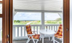 Ein großzügiger Balkon mit West-Ausrichtung gehört ebenfalls zur Ausstattung und begeistert mit einem wunderschönen Meerblick. Hier kannst du bei Meeresrauschen und traumhaften Sonnenuntergängen deinen Urlaub genießen. Ein PKW-Stellplatz gehört zur Ferienwohnung dazu.