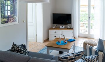 Klein aber fein. Wir waren mit 2 Erwachsenen und einem Kleinkind (1,5 Jahre) in der Ferienwohnung. Sehr gute Lage aufgrund der Nähe zum Strand und für wunderschöne Radtouren in die Umgebung. Das Haus ist sehr nah durch andere Ferienhäuser bebaut, trotzdem sehr ruhig gelegen. Persönliche Atmosphäre, da nur 4 Ferienwohnungen in dem Haus vorhanden sind, kein ganzes Hotel o.ä. Die anderen Gäste waren bei unserem Aufenthalt ruhig, sodass auch die Terrasse der Anderen an unserem Schlafzimmerfenster nicht gestört hat (gerade mit Kleinkind..). Schöne Einrichtung. Das Bad ist tatsächlich klein, hat uns aber für den Aufenthalt von 10 Tagen völlig genügt. Die Schlaffunktion des Sofas war für 10 Nächte auch gut. Die Wohnung ist eher dunkel und die Terrasse halbschattig, jedoch gerade für den Sommer angenehm kühl und völlig in Ordnung. Eine Salatschüssel und eine Waschmaschine wären hilfreich gewesen. Ansonsten alles vorhanden, was wir benötigt haben.