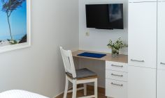 Die Ferienwohnung war in Ordnung aber leider mit Abstrichen. 1. Küche mit wirklich guter Ausstattung. 2. Im Schlafzimmer zu wenig Schrankraum und Bügel. Bett sehr bequem. 3. Wohnzimmereinrichtung mediteran schön. 4. Direkter Zugang vom Eingang/Terrasse in das Wohnzimmer, hat aber den Nachteil, das Schuhe usw. im Wohnzimmer stehen. 5. Das innenliegende Bad ist sehr beengt. Beim Duschen wird der Boden ziemlich nass. Wenig Platz für Handtücher, die so gut wie gar nicht trocken werden können. Kaum Ablagemöglichkeiten. 6. Wirklich negativ ist, das die Wohnung einfach zu dunkel ist. Durch die Fenster kommt kaum Helligkeit und auf der Terrasse ist wenig Sonne. Das liegt natürlich an der Himmelsrichtung und an den großen Bäumen. Wir mussten am Tage das Licht einschalten. Dafür ist der Preis dann doch zu hoch. Die Wohnung Glück werden wir nicht wieder mieten. Tipp: Es gibt eine weitere kleine Wohnung für 2 Personen im Haus mit mehr Helligkeit und Sonne, weil zur anderen Seite gelegen.