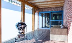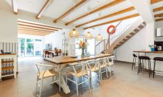 In unmittelbarer Strandlage, direkt hinter den Dünen und eingebettet von einem kleinen Kiefernwald, befindet sich dieses großzügige und modern ausgestattete Ferienhaus. Der Strandweg führt dich vom Grundstück aus durch die Dünenlandschaft geradewegs zum feinen weißen Sandstrand. Das Ortszentrum mit Einkaufsmöglichkeiten, Cafés und Restaurants ist knapp einen Kilometer entfernt.