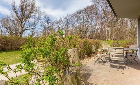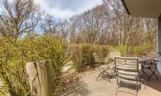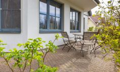 Im Außenbereich befindet sich eine Steinterrasse, die du von Wohnraum und Hauptschlafzimmer betreten kannst. Dank der Holzbohlen und heimischen Bepflanzung genießt du hier private Augenblicke mit einem herrlichen Blick auf den Deich - Meeresrauschen inklusive. Zur Ferienwohnung gehört außerdem ein PKW-Stellplatz.