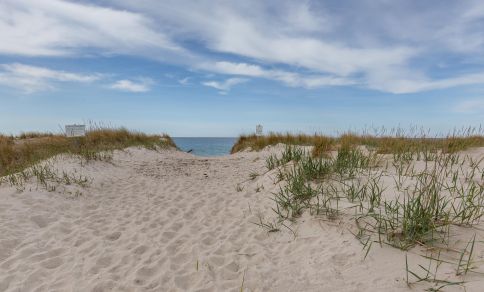 Die schmale Landbrücke, die das Fischland mit dem Darß verbindet, zählt zu den schönsten Urlaubsregionen auf der Halbinsel. Und genau hier - zwischen weißen Traumstränden und dem Bodden mit seinen satten grünen Fischlandwiesen - befindet sich das Strandhaus Wustrow. Gerade einmal 30 Meter sind es von den insgesamt fünf Ferienwohnungen über die Dünen bis zum Meer. Der angrenzende Deich führt dich in das quirlige Zentrum des ehemaligen Fischerdorfs und in die umliegenden Ostseebäder. Es ist der perfekte Ausgangspunkt für Strand- und Naturliebhaber, denn beides liegt vor der Haustür und kann aktiv zu Fuß oder mit dem Rad entdeckt werden.