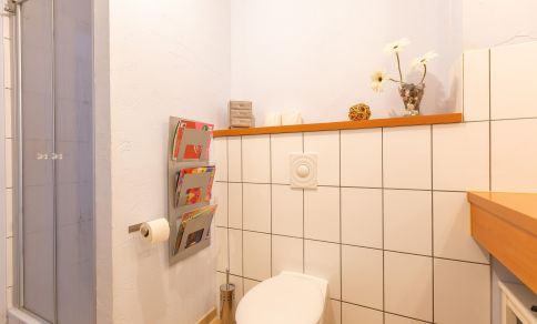 Im Hausflur befindet sich der Hauswirtschaftsraum mit Waschmaschine und Trockner. Beide Geräte werden über einen Münzer betrieben und stehen allen Mietparteien zur Verfügung.