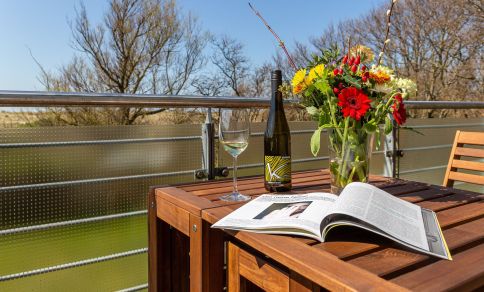 Im Außenbereich steht dir ein Balkon zur Verfügung. Von hieraus siehst du beim Ausklang des Abends auf die wunderschöne Deichlandschaft, Möwengeschrei, Meeresrauschen und teils spektakuläre Sonnenuntergänge inklusive. Zur Ferienwohnung gehört außerdem ein PKW-Stellplatz.