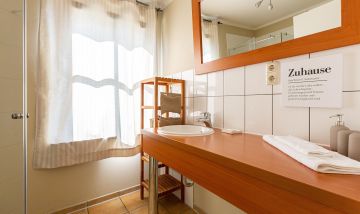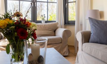 Wir, das sind mein Mann, mein Hund und ich, hatten wunderschöne Tage, in einer Ferienwohnung in der wir uns schon ab dem ersten Moment zu Hause gefühlt haben. Wenn ich schreibe es war alles da und drin was man braucht, wird das der Whg. 4 nicht wirklich gerecht. Alles und mehr, passt doch eher. Gemütlich ausgestattet, Hell und freundlich, aber nicht zu überladen. Und genügend Lichtquellen um auch spät abends nicht im Dunkeln sitzen zu müssen. Nicht zu vergessen, endlich einmal Schlafzimmerschränke in denen Platz ist und Bügel hängen und dazu noch ein Kommode mit Schubladen. Wenn wir einen Verbesserungsvorschlag machen sollten wäre das, die Terrasse bei der Wohnungsreinigung auch kurz abzufegen und bequemer Sitzmöglichkeiten draußen, Wir hätten uns schon ganz gerne auch mal draußen hingesetzt um einfach nur zu klönen oder draußen zu lesen. Aber leider war das dann doch auf Dauer zu unbequem,(Die Bücher sind auch Ausstattung der Whg. 4 und ein paar haben genau unseren Geschmack getroffen) Wir haben uns trotzdem wohlgefühlt und werden wieder hinfahren und wenn es irgend geht die Whg. 4 nehmen.