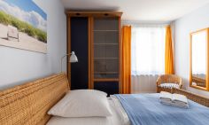 Die schmale Landbrücke, die das Fischland mit dem Darß verbindet, zählt zu den schönsten Urlaubsregionen auf der Halbinsel. Und genau hier - zwischen weißen Traumstränden und dem Bodden mit seinen satten grünen Fischlandwiesen - befindet sich das Strandhaus Wustrow. Gerade einmal 30 Meter sind es von den insgesamt fünf Ferienwohnungen über die Dünen bis zum Meer. Der angrenzende Deich führt dich in das quirlige Zentrum des ehemaligen Fischerdorfs und in die umliegenden Ostseebäder. Es ist der perfekte Ausgangspunkt für Strand- und Naturliebhaber, denn beides liegt vor der Haustür und kann aktiv zu Fuß oder mit dem Rad entdeckt werden.