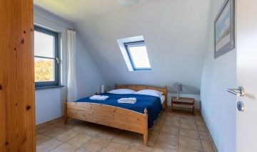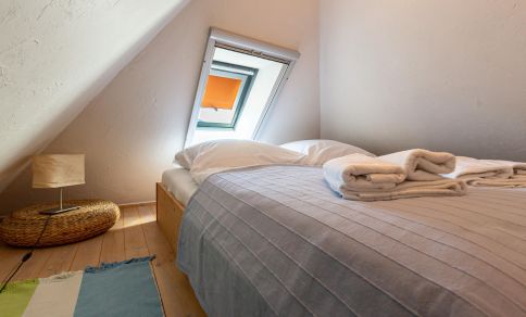 Bitte beachte: Im Sommer kann es im Schlafzimmer, dass sich im Spitzboden befindet, zu warmen Temperaturen kommen.