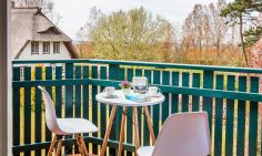 Wer die Nähe zum feinen Sandstrand in Ahrenshoop sucht, ist in dieser Ferienwohnung genau richtig. Nur knapp 100 Meter Luftlinie trennen Sonnenanbeter von der Ostsee. Wer nur mal schnell schauen möchte wie hoch die Wellen sind, kann die See auch von einem der Balkone genießen. Bis zum Ortszentrum ist es knapp ein Kilometer. Die gute Anbindung an die Fahrradwege machen dieses Domizil zum idealen Ausgangspunkt für ausgedehnte Radtouren.