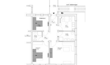 Die Unterkunft „Strandläufer 2“ befindet sich im ersten Obergeschoss des Haupthauses Strandläufer und ist über eine Außentreppe zu erreichen. Großzügige Räume, helle Farben und ein Mix aus modernem Mobiliar und Möbeln im Stil der Gründerzeit machen diese Ferienwohnung zu einem besonderen Urlaubsdomizil. Vom Flur mit Garderobe gelangst du direkt in das großzügige Wohnzimmer mit gemütlicher Couch und TV. Dieses kann bei Bedarf ausgezogen werden und dient als Aufbettung für bis zu zwei Personen. Die zwei gemütlichen Schlafzimmer sind mit je einem Doppelbett und Kleiderschrank ausgestattet. Somit gibt es hier ausreichend Rückzugsorte und erholsame Nächte. Auch die vollausgestattete Küche mit seinem großzügigen Esstisch lässt keine Wünsche offen. Hier findet die ganze Familie beim gemeinsamen Kochen und Klönen Platz. Für noch mehr Wohnkomfort sorgen die beiden Badezimmer mit Dusche und WC.
