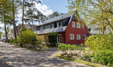 Die Hausanlage mit zwölf Ferienwohnungen liegt nur 150 Meter vom weißen Ostseestrand entfernt und befindet sich direkt an der Bäderstraße L21. Neben der strandnahen Lage ist auch der Ortskern mit Bäckereien und einer Vielzahl von Restaurants, Cafés und Kunstgalerien nur ca. einen Kilometer entfernt. Der angrenzende Deich eignet sich perfekt für Wanderungen oder Radtouren in den Nationalpark, zum Weststrand und entlang der weiten Boddenlandschaft.