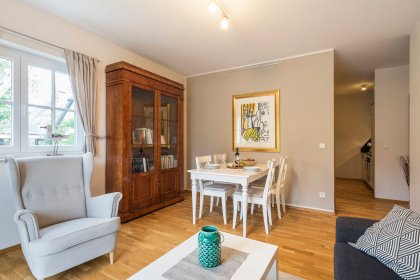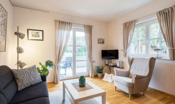 Die Wohnung "Lionel Feininger" befindet sich im Erdgeschoß eines größeren , schönen Apartmenthauses mit Schwimmbecken und Sauna im Keller. Die Wohnung war sehr gemütlich eingerichtet, mit allem Notwendigen für einen angenehmen Aufenthalt ausgestattet. Es gibt ein ausgesprochen komfortables, kingsize Doppelbett im Schlafzimmer und die Möglichkeit, im Wohnzimmer ein Schlafsofa zu nutzen. Die Küchenzeile ist nicht sehr groß, aber ausreichend, wenn man darin keine Fünf-Gänge-Menues zubereiten will. Nach Ahrenshoop-Zentrum sind es vielleicht 1km. Das Haus liegt direkt an der Durchgangsstrasse nach Prerow/Zingst, was jetzt im September kein Problem ist, weil man dann die gut isolierenden Fenster nicht offen stehen lassen muss. Im Sommer würde ich hier nicht wohnen wollen, ich denke, dann wäre mir die Wohnung zu laut. Fazit: In den kühleren Monaten des Jahres gerne immer wieder, im Sommer würde ich eher nach einer Alternative in größerer Entfernung zur Dorfstrasse suchen. (In Ahrenshoop nicht so einfach, weil der Ort am schmalsten Landstreifen und rechts und links begrenzt von Bodden/Meer liegt. Hier sind die meistenHäuser mehr oder weniger dicht an der Strasse)