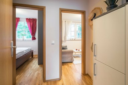 Die Wohnung ist unser Favorit wegen der seltenen Kombination aus Hunde-erlaubt und kinderfreundlichem Schwimmbad inkl. Sauna im Haus.