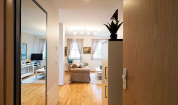 Das Schwimmbad befindet sich im Haus 2 und die Wohnung in Haus 1. Zur Nutzung musst du das Haus 1 verlassen, um ins Haus 2 zu gelangen. Das Schwimmbecken hat die Maße 4,0 x 7,5 Meter und ist etwa 1,40 Meter tief.
