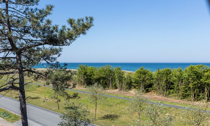 Die Hausanlage mit 13 Ferienwohnungen liegt nur 150 Meter vom weißen Ostseestrand entfernt und befindet sich direkt an der Bäderstraße L21. Neben der strandnahen Lage ist auch der Ortskern mit Bäckereien und einer Vielzahl von Restaurants, Cafés und Kunstgalerien nur ca. einen Kilometer entfernt. Der angrenzende Deich eignet sich perfekt für Wanderungen oder Radtouren in den Nationalpark, zum Weststrand und entlang der weiten Boddenlandschaft.
