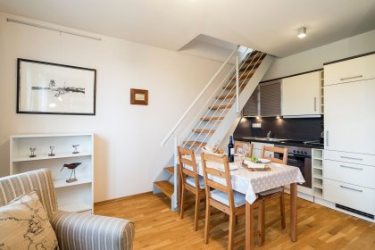 Schickes, helles Appartement direkt in Strandnähe. Den kleinen Wellnessbereich haben wir an kühlen Abenden gern genutzt. Kontakt zum Verwalter war sehr freundlich. Der Parkplatz im Hof ist etwas knifflig, zumindest wenn man seine große Familienkutsche einrangieren möchte, aber machbar. Einmal eingeparkt, lässt man das Auto auf der wunderschönen Halbinsel sowieso am besten stehen und genießt die Landschaft zu Fuß oder mit dem Rad. Alles in allem hatten wir ein paar sehr schöne Tage und kommen gerne wieder.